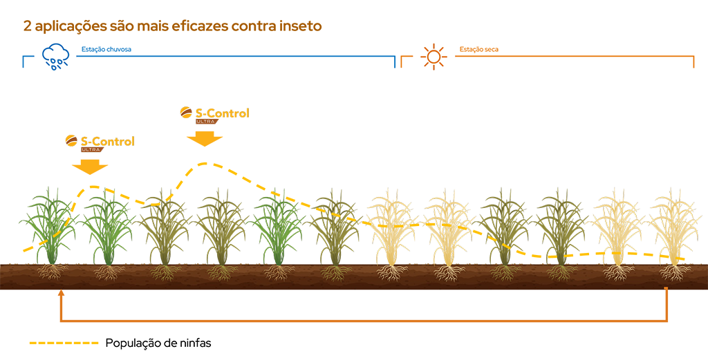 S-Control Ultra é um inseticida microbiológico à base de Metarhizium anisopliae (Metsch) cepa IBCB 425. Promove o controle de ninfas e adultos, sendo indicado para o manejo de Cigarrinhas-das-pastagens (Deois flavopicta e Zulia entreriana) e da Cigarrinha-das-raízes (Mahanarva fimbriolata).